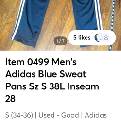 Item 0499 Men's Adidas Blue Sweat Pants Sz S 38L Inseam 28$5Spring Valley, CA
