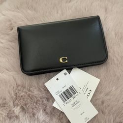Coach Slim Card Case Bifold Snap Wallet in Brass/Black Smooth Calf Leather NWT$85Lakeside, CA