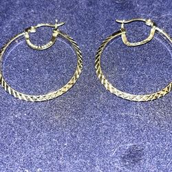 14K Yellow Gold Diamond-Cut Hoop Earring. These earrings are characterized by a geometric, textured pattern that is "diamond-cut"$100San Diego, CA