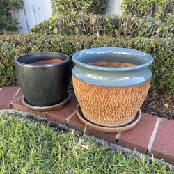 Vintage lot 2- Dark Grey Blue Pot Planter Saucers Stoneware Flower Garden Clay Stone Pottery Vase Trees Herbs Succulents Plants $36San Diego, CA