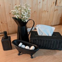 4 PIECE BATHROOM SET, TISSUE, SOAP HOLDERS, BATHTUB SHAPED TRAY VASE WITH BABY'S BREATHE FLOWERS$25Ramona, CA
