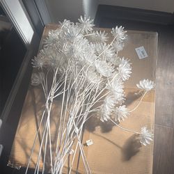 Lovely Floral Arrangement: Silver & White Flowers, Gold foiled Glass Vase. Overall Size: 18” x 10”. Vase: 6 H x 4.25” (top), 4.25” (bottom), 3” (base)$12San Diego, CA
