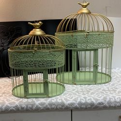 Two Beautiful Green & Gold Decorative Bird Cages 14 X 9 X 19” Larger One, & 11 X 7 X 14”.$30Temecula, CA