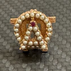 Alpha Omicron Pi Sorority Gold Pin with Pearls, Red Gemstone, Alpha Design$249Encinitas, CA
