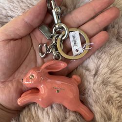 NWT Coach Bunny Rabbit Bag Charm Keychain Silver Coral Pink CBH21$70Lakeside, CA