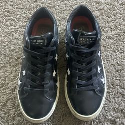 Black leather Skechers Street Los Angeles Black Leather Silver Glitter Stars Sneaker$35Santee, CA