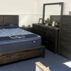 4 Pc Queen Rustic Bedroom Set ( Bed Frame, Dresser, Mirror And One Nightstand) $1,698San Diego, CA