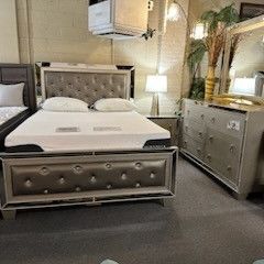 Queen Silver Bedroom Set ( Bed Frame, Dresser, Mirror And One Nightstand) $1,999San Diego, CA