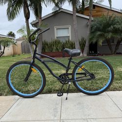 Classic Beach Cruiser Bike β Black with Blue Rims, Like New $80Oceanside, CA