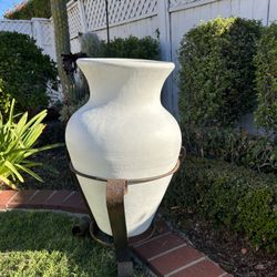 Vintage White Terracotta Vase Planter With Rustic Large Stand Garden Decor Indoor Outdoor Collectible Retro Urn Vessel $100San Diego, CA