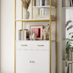 HITHOS 71" Tall Bookshelf, Modern White and Gold Bookcase, Book Shelves with Drawers and Storage Cabinet, Metal Etagere Bookcase Display Shelves for H$95San Diego, CA