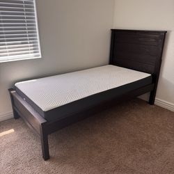 Solid Wood Twin Bed Frame + Mattress – Modern Dark Finish – Good Condition$160Oceanside, CA