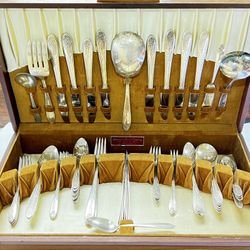 70 Pcs Antique HOLMES & EDWARDS SILVER PLATE IS DEEP SILVER W/ NAKEN SILVERWARE CHEST $60San Diego, CA