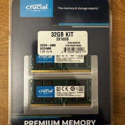 Crucial 32GB (2x 16GB) 2666 MT/S 260-Pin DDR4 SDRAM SODIMM (PC4-21300) Memory Module, CL19$200Pinole, CA