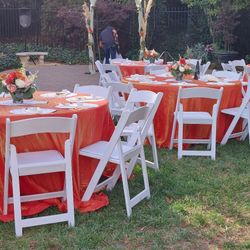 10 70” Round Iridescent, Orange Tablecloths $120Crockett, CA