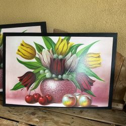 Cuadros De Flores Y Frutas Y Pequeño Estante Decorativo . Buen Estado. 10 Dls Por Pieza Medida 35’x21’$10Spanish Flat, CA