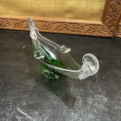blown glass Murano Venetian gondola ashtray transparent and green 70s$50Concord, CA