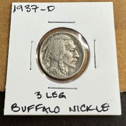Rare 1937D 3 Legged Buffalo Nickel $630Brentwood, CA