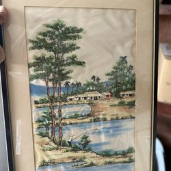 Vintage Framed Asian Landscape Print – Fisherman River Scene with Village Huts – 14x18”$15Antioch, CA