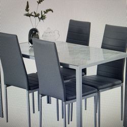 Gray Dining Set For 4 With Tempered glass $135Pittsburg, CA
