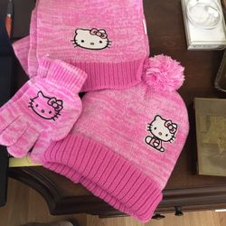 Hello Kitty Pom Pom Hat , Gloves And Scarf Set Girls 4-16$10Hercules, CA