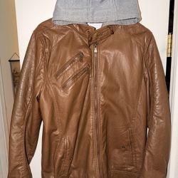 *NICE* Brown Leather Jacket With Hood$40Vacaville, CA