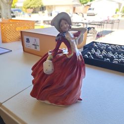 Royal Doulton Figurine AUTUMN BREEZES RED Woman in Dress Made in England $50Vacaville, CA