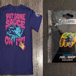"Put Some Sauce On It" T-Shirt + 3 Tacos Pin - SJ Sharks$100Walnut Creek, CA