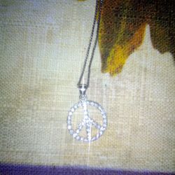 Diamond Peace Sign 925 S Silver Pendant And Chain$50Antioch, CA