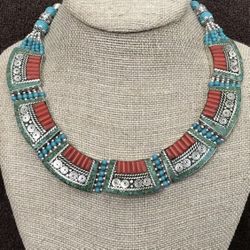 Tribal vintage Tibetan turquoise with red coral 925 sterling silver$160Suisun City, CA