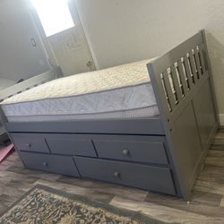 Wooden Twin Size Bed With Drawers And Mattress $25Clayton, CA