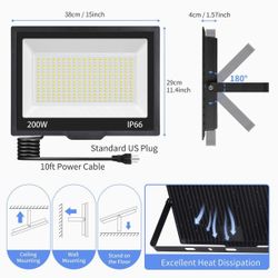 New 200W LED Flood Light Outdoor with Plug+10ft Wire, 24000Lm Super Brighter Security Light, IP66 Waterproof LED Worklight, 5000K Daylight White Exter$35Oceanside, CA