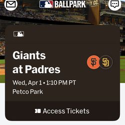 Padres Tickets Giants Ticket Wednesday$40Oceanside, CA