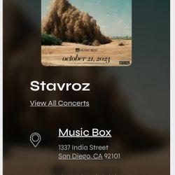 Stavroz Tickets October 21 Music Box$150San Diego, CA