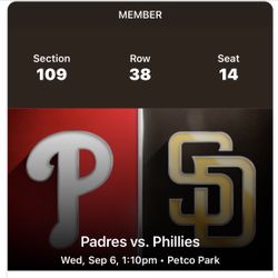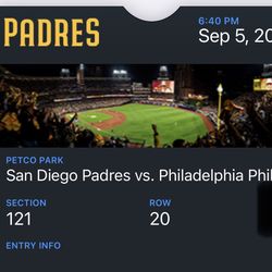 Two Padres Phillies Tickets! Tonight 9/5$250Oceanside, CA