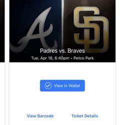 Padres Vs Braves April 18th, 2023 2 Tickets Section 220 Row 5 Seats 7,8$65Escondido, CA