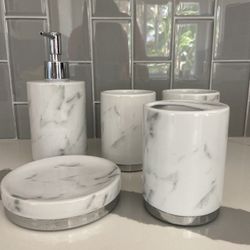Willow & Ivory™ Bathroom Accessories Set | 5 Pc Ceramic | Toothbrush Holder, Soap Dispenser, Soap Dish, 2 Tumblers$20La Costa, CA