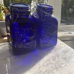 2 VTG Cobalt Blue Lidded Mason Jars $30Mission Viejo, CA