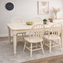 Refinished Cream Farmhouse Dining Set – Extendable Table + 4 Windsor Chairs $500San Marcos, CA