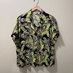 Women’s Vintage 1X Notations Woman Green Black Tropical Hawaiian Button Up Shirt$25Menifee, CA