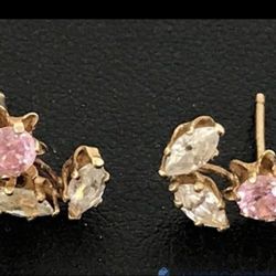 10K Yellow Gold Pink & Clear Rhinestone Flower Earrings - 0.51g$100Oceanside, CA