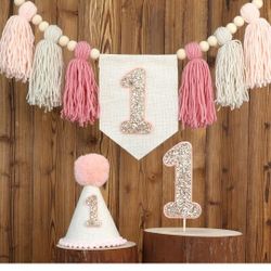 Pink Baby Girl 1st Birthday Highchair Wood Bead Tassel Garland And Hat$10Menifee, CA