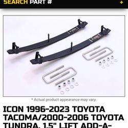 ICON ‘96-‘23 TOYOTA TACOMA/2000-2006 TOYOTA TUNDRA, 1.5" LIFT ADD-A-LEAF KIT$200Fallbrook, CA
