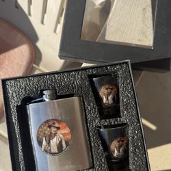 John Wayne Stainless Steel Flask With 2 Matching Shot Glasses NEW In Box!! Great Gift!!$30Menifee, CA