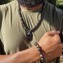 Red Tiger eye/Dragon Blood Japser/Lava Rock & Black Osidian Crystal Beaded Jewelry Set. $75Wildomar, CA