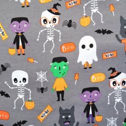Grey Halloween Print Knit Fabric/ Skeletons/ Ghosts/ Vampires $12Temecula, CA