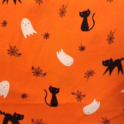 Orange Halloween Print Knit Fabric / Black Cats / Ghosts / Spiderwebs$20Temecula, CA