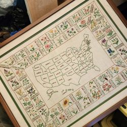 Vintage Hand-Embroidered USA States Floral Map – Framed$40Escondido, CA