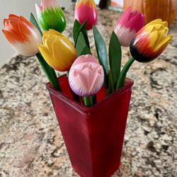 Beautiful Tapered Red Hand Painted Glass Vase Wooden Tulips are not included, sold separately $10Laguna Niguel, CA