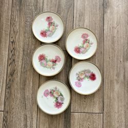 Set of 5 Antique German Porcelain Plates โ Hand-Painted Chrysanthemums with Gold Rim (c. 1900)$35Menifee, CA
